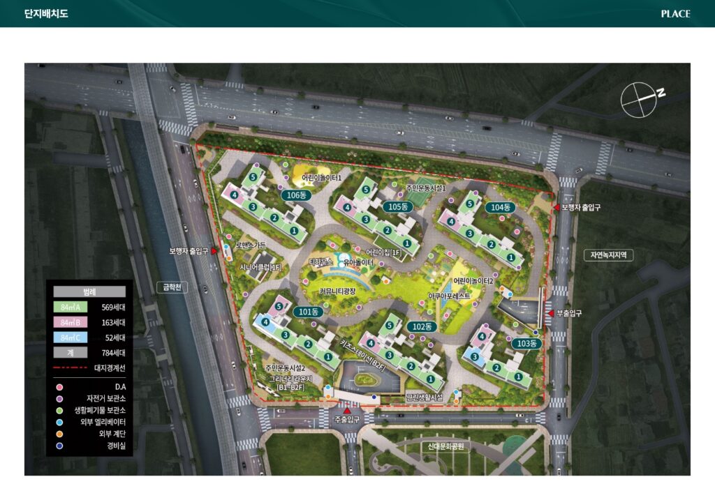 ※건물의 색채, 외관, 조경, 식재 및 보행로는 입주자의 이해를 돕기 위한 것으로 실제와 다소 차이가 있으며, 추후 인허가 과정 및 실제 시공 시 변경될 수 있습니다. 또한 구획선과 시설물의 위치 및 규모 역시 측량 결과 및 각종 평가에 따라 시공 시 변경될 수 있습니다.
